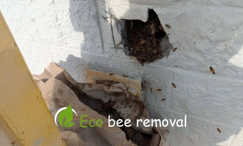 Once bees find a hole—even as small as a pencil—they can build a 40–80 lb hive inside the wall.