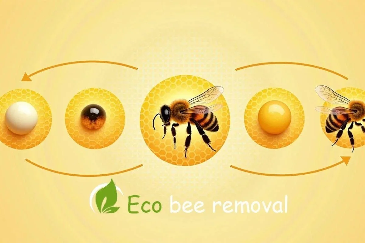 Honeybee life cycle step by step — egg, larva, pupa, and adult