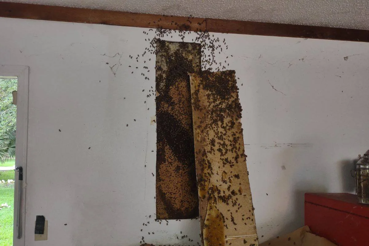 Don’t seal the hole without removal: If you block the bees’ entrance without removing the hive, they’ll try to escape inside the house—or die and rot inside the wall.