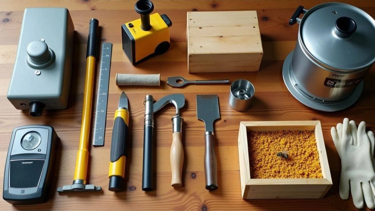 Once the hive is exposed, beekeepers use specialized hand tools such as: